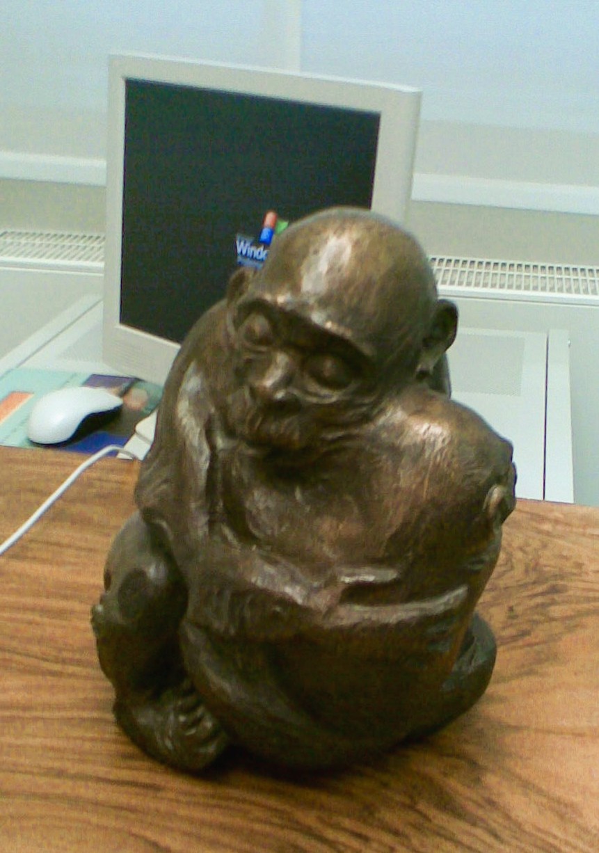 Der Arzt, der in seiner Klinik Patienten mit gefährlichen Aneurysmen im Bauch operiert, erklärt die Figur auf seinem Schreibtisch so. >Das ist ein Angst-Affe. Wer hier vor mir sitzt, hat in der Regel große Angst. Die bergende Figur soll ihm die Angst nehmen. Ihm und seinen Angehörigen.<