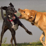 Der Große stürzt sich auf den Kleinen und es beginnt ein wilder Kampf. Die beiden bilden ein einziges Knäuel, ein Bellen und Jaulen. Während der Halter des großen Hundes immer noch herbeieilt, komme ich dem Kleinen zu Hilfe, versetzte dem Angreifer einen beherzten Tritt in die Flanke und bemühe mich, die Streithähne, Streithunde auseinander zu zerren. Vergeblich.
